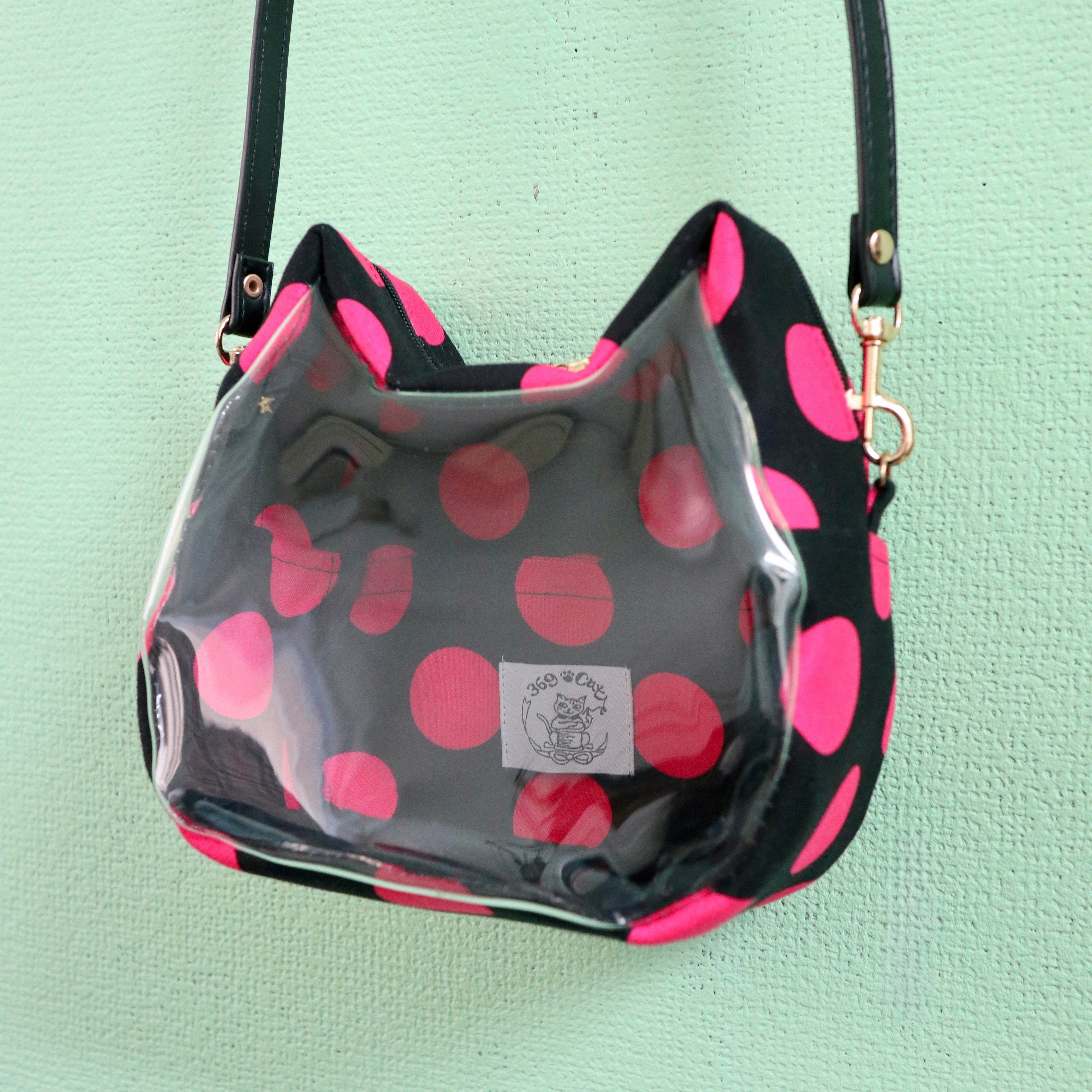 猫ポ 猫型クリアポシェット 黒ピンク